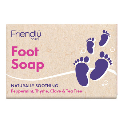 Friendly Foot Soap är en handgjord tvål som är framtagen för att vårda och fräscha upp trötta fötter. Tvålen innehåller sheasmör, pepparmynta, tea tree, kryddnejlika och timjan som mjukgör, desodoriserar och skyddar huden. Den naturliga pimpstenen exfolierar försiktigt och avlägsnar förhårdnader, medan Rubia Tinctorum-rötter bidrar till att lugna fötterna. Tvålen är lämplig för daglig användning och perfekt för en komplett fotvårdsrutin.
