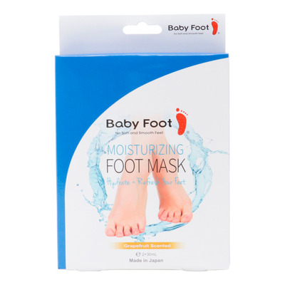 Baby Foot Moisturizing Foot Mask levereras som ett par engångsstrumpor med gel och en fräsch grapefruktdoft. Strumporna passar skostorlekarna 36-45 och är lätta att applicera hemma. De aktiva ingredienserna tränger snabbt in och har en märkbar effekt. Masken behöver inte sköljas av efter användning.