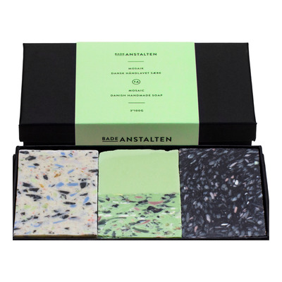 Denna presentförpackning från Badeanstalten innehåller tre av de bäst säljande tvålarna. Tvålarna har en underbar doft, baserad på vegetabiliska oljor med en hög halt av glycerin som verkar återfuktande .