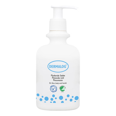 Flytande tvål från Dermalog har en mild och allergivänlig formula som är lämplig för daglig tvätt av både händer, ansikte och kropp. Den innehåller bland annat glycerin, som ger huden närande fukt. Tvålen är också AllergyCertified, Svanenmärkt och 100% fri från parfym, parabener, färgämnen, lanolin, kathon, formalin och formalinfrisättande ämnen.