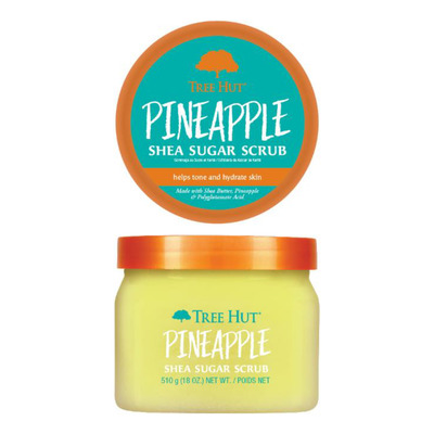 Tree Hut Shea Sugar Scrub Pineapple är en mild och vårdande sockerskrubb som effektivt avlägsnar döda hudceller