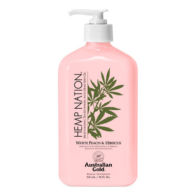 Australian Gold Hemp Nation Body Lotion White Peach and Hibiscus är en närande lotion som ger djup återfuktning och skydd mot miljöpåfrestningar. Kombinationen av vit persika och hibiskus ger kraftfulla antioxidanter som hjälper till att bibehålla en fast och ungdomlig hud. Hampafröolja tillför essentiella fettsyror som förbättrar hudens elasticitet och gör den silkeslen och återfuktad.
