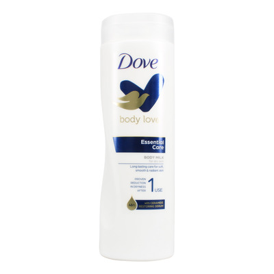 Dove Essential Care Body Milk vårdar och återfuktar torr hud och är lämplig för daglig användning