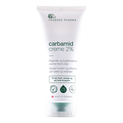 Faaborg Pharma Carbamid Creme 5% är en mjukgörande och fuktgivande kräm för vård av torr, sträv och hård hud.