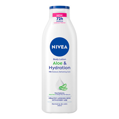 Nivea Aloe & Hydration Body Lotion är framtagen för att återfukta huden på djupet och göra den märkbart mjuk och len. Den återfuktar huden i upp till 72 timmar och den ultralätta, uppfriskande lotionen absorberas snabbt utan att klibba. Berikad med hyaluronsyra, aloe vera och närande serum hjälper denna body lotion till att förbättra hudens hälsa och lyster efter varje användning. Idealisk för normal till torr hud, men passar för hela kroppen året runt.