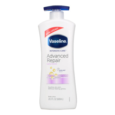 Använd Vaseline Advanced Repair Body Lotion dagligen för att lindra mycket torr hud. Applicera generöst på huden och massera tills den absorberats helt. Perfekt för daglig användning för att bibehålla hudens fukt och hälsa.