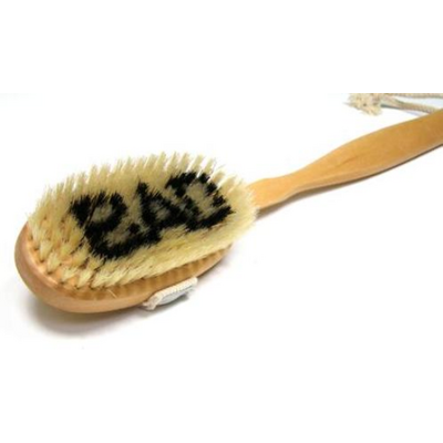 Borsten har ett bra grepp så att den är behaglig att använda för att tvätta kroppen med i badet eller duschen. Använd den till exempel med din favorittvål och borsta i cirklar för att verkligen rengöra huden under duschen. Med sitt långa skaft kan den också nå hela ryggen! Tvätta bara borsten med vatten efter användning och låt den hänga i sitt snöre så att den kan lufttorka till nästa gång.