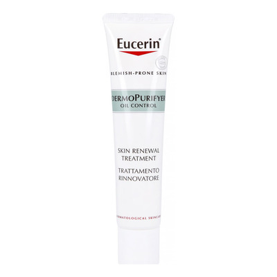 Krämen förfinar hudytan och bidrar till en klarare hudton. Den används som ett komplement till den dagliga hudvårdsrutinen och bör alltid kombineras med en fuktkräm. För optimalt skydd rekommenderas att man applicerar en solkräm med hög faktor på morgonen. Eucerin DermoPurifyer Oil Control Skin Renewal Treatment appliceras på kvällen på ren hud.