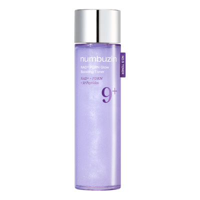 Numbuzin No.9+ NAD+ PDRN Glow Boosting Toner är en essence-liknande toner som återfuktar på djupet och ger huden en omedelbar lyster. Den innehåller ceramidbaserade pärlor och 50 peptider som hjälper till att förbättra hudens elasticitet och minimera porer. Formulan är berikad med NAD+ och 100% ren lax PDRN för att stärka hudbarriären och stödja hudens hälsa och lyster.