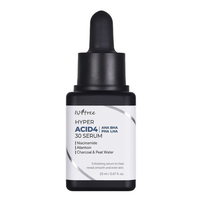 Isntree Hyper Acid 4 30 Serum är ett exfolierande serum med fyra typer av fruktsyror (AHA, BHA, PHA och LHA) som effektivt avlägsnar döda hudceller och förfinar hudens yta. Serumet fungerar som en mild 1-minuts peeling som sköljs av och hjälper till att reducera ojämn hudton, åldersfläckar och stora porer. Det är särskilt lämpligt för fet och oren hud eftersom det reglerar talgproduktionen och förebygger tilltäppta porer.