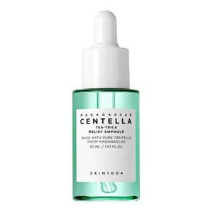 SKIN1004 Madagascar Centella Tea-Trica Relief Ampoule är ett lättviktsserum som är särskilt lämpligt för irriterad och oren hud. Serumet kombinerar tea tree-olja och centella asiatica-extrakt för att lindra rodnad, minska finnar och stödja hudens balans. Tea tree har en antibakteriell effekt och bidrar till att minska inflammation, medan centella återfuktar och stärker hudens barriär. Serumet absorberas snabbt och känns inte tungt på huden.