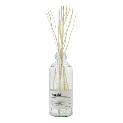 Skapa en härlig atmosfär i hemmet med Meraki! Den underbara doften ger snabbt en avslappnad känsla i rummet. Doftpinnarna passar bra för att sätta i rummet för att ge en välkomnande atmosfär. Timber Haze har en härlig doft med toner av grön citrus och blommor som ros, näva och jasmin som ger känslan av att gå in i en blomstrande trädgård. Doftpinnarna passar bra i både badrum, vardagsrum och sovrum.
