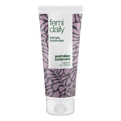 Australian Bodycare Femi Daily är en daglig gel för intimområdet som hjälper till att förebygga klåda, torrhet och obehaglig lukt. Gelen är vattenbaserad och har en lätt konsistens som absorberas snabbt utan att vara fet. Femi Daily innehåller återfuktande ingredienser som håller huden mjuk och välvårdad, samtidigt som den pH-reglerade formulan stödjer hudens naturliga balans. Gelen kan användas av både män och kvinnor.