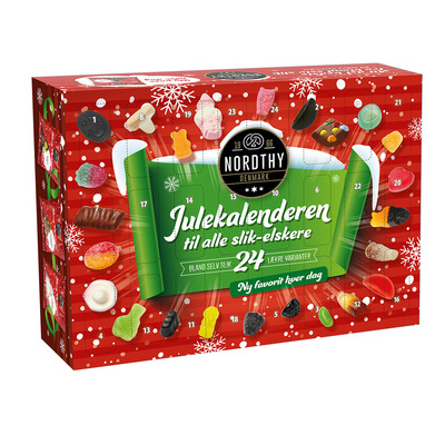 Spännande julkalender med 24 läckra godisar från danska Nordthy