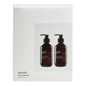 Unna en vän, flickvän eller någon tycker om med denna presentförpackning från Meraki. Presentförpackningen innehåller en Meraki Meadow Bliss handtvål och handlotion, som båda är ekologiskt certifierade med ECOCERT Cosmos. De har en fräsch doft av citrus, verbena, trä och te. Handtvålen är framställd med glycerin och ekologisk aloe vera, som återfuktar och vårdar huden, samtidigt som ekologiskt havreextrakt har en närande och lugnande effekt. Den silkeslena handkrämen består av bl.a av ekologisk avokadoolja, som återfuktar din hud och gör den mjuk och välvårdad.