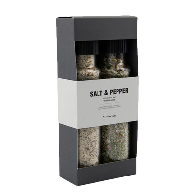 Presentförpackning från Nicolas Vahé med salt/peppar mix samt salt/ramslök