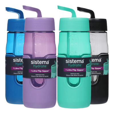 Sistema Flip Sipper Bottle ml är en hållbar och återanvändbar vattenflaska med ett smart flip sipper-lock och praktisk bärrem. Den är idealisk för skola, arbete och fritid och är tillverkad av BPA-fri Ultra Clear-plast. Det lufttäta locket ser till att flaskan inte läcker och den tål maskindisk på översta hyllan. Med sina 1000 ml är den perfekt för både barn och vuxna. Flaskans ergonomiska grepp gör den bekväm att hålla i och designen är både funktionell och modern.