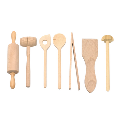 Produkterna är tillverkade av bokträ och är lätta att hantera för små händer.