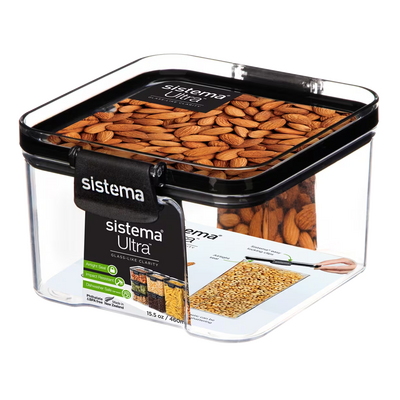 Sistema Tritan Ultra Square är en kompakt fyrkantig förvaringslåda i kristallklar tritanplast med en kapacitet på 460 ml. Tritan-materialet ger en glasliknande klarhet samtidigt som det är hållbart och okrossbart. Boxen är utrustad med Sistemas patenterade låsclips och en lufttät försegling som håller innehållet fräscht längre. Den eleganta designen med svart och genomskinligt lock ger en snabb överblick över innehållet.