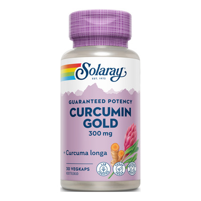 Solaray Curcumin Gold är ett kapseltillskott med mikroniserat rotextrakt från gurkmeja (Curcuma longa L.). Gurkmeja är släkt med ingefära och knölen används både som krydda, färgämne i mat samt som kosttillskott. Curcumin är den aktiva ingrediensen som ger gurkmeja dess distinkta, gula färg.