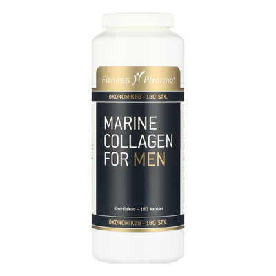 Fitness Pharma Collagen for Men är ett kosttillskott i praktisk kapselform som gör det enkelt för män att få i sig olika vitaminer och mineraler. Tillskottet innehåller zink, som bidrar till att bibehålla normalt hår, hud och naglar. Biotin bidrar också till att bibehålla normalt hår. C-vitamin bidrar till normal bildning av kollagen, vilket är viktigt för normal hudfunktion.