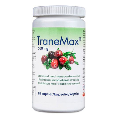 Genom att försiktigt spraytorka den koncentrerade saften av solmogna amerikanska tranbär framställs det tranbärsextrakt som används i TraneMax. Varje kapsel innehåller 500 mg tranbärsextrakt, vilket motsvarar 12,5 g färska tranbär.