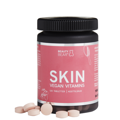 Detta kosttillskott från Beauty Bear är för dig som vill underhålla och vårda din hud. Beauty Bear Skin är små veganska tabletter som innehåller grönt te, druvkärnextrakt, schisandra-extrakt och åkerfräkenextrakt. Dessutom innehåller detta kosttillskott extrakt av amla, som är en källa till vitamin C som bidrar till normal bildning av kollagen, vilket är viktigt för normalt fungerande hud. Kosttillskottet är också veganskt, Cruelty Free och tillverkat utan konstgjord färg, smak, socker och sötningsmedel.