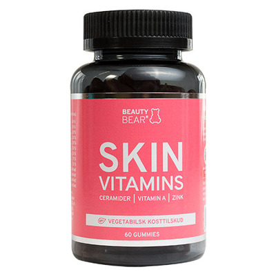 Beauty Bear Skin Vitamins är små vitamingummies med den godaste smaken av hallon, som gör det till ett nöje att ta sitt dagliga kosttillskott. De är formade som små nallar och burken har ett barnsäkert lock. Beauty Bear Skin Vitamins innehåller zink och vitamin A, som hjälper till att bibehålla normal hud. Dessutom innehåller kosttillskottet bl.a. ceramidolja, biotin och granatäppelextrakt.
