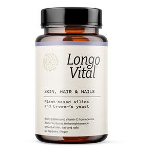 Longo Vital Daily Essentials Skin & Nails är ett veganskt kosttillskott för hud, hår och naglar