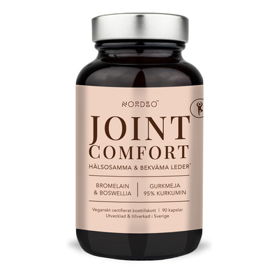 NORDBO Joint Comfort är ett kosttillskott med ett trippelkomplex av gurkmeja, boswellia och bromelain. Gurkmejaextraktet har ett naturligt innehåll av 95% curcuminoider och boswellia härrör från det indiska rökelse trädet. Bromelain är ett enzym som utvinns ur ananas. Ingredienserna används ofta i kosttillskott som riktar sig till personer med en aktiv livsstil.