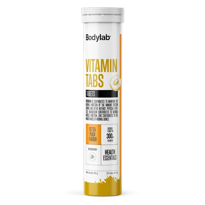 Bodylab Vitamin Tabs är ett kosttillskott i form av välsmakande brustabletter som innehåller 13 vitaminer och 9 mineraler. Produkten är avsedd för daglig användning och stödjer immunförsvaret, energiomsättningen och muskelfunktionen. Brustabletterna är veganska, utan tillsatt socker och utan artificiella färgämnen. De löses snabbt upp i ett glas vatten och har en frisk apelsinsmak, vilket gör dem enkla och behagliga att äta.