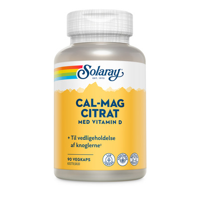 Solaray Cal-Mag Citrate med vitamin D är ett vitamin- och mineraltillskott formulerat specifikt för att upprätthålla normal benstomme. Tillsammans med magnesium och fosfor utgör kalcium en stor del av benvävnadens struktur - dessutom innehåller denna variant av Cal-Mag Citrate vitamin D, vilket bidrar till musklernas normala funktion samt en normal absorption och användning av kalcium och fosfor i kroppen.