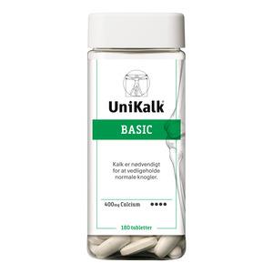 UniKalk Basic är ett kosttillskott i tablettform som innehåller 400 mg kalcium per tablett och är idealisk för dig som vill komplettera din dagliga kost med kalcium. Om du vill ha ett D-vitamintillskott samtidigt, kan välja UniKalk Plus istället.