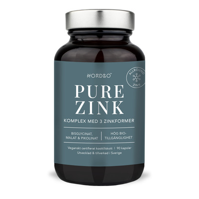 NORDBO Pure Zinc är ett kosttillskott med tre former av zink, alla med hög biotillgänglighet