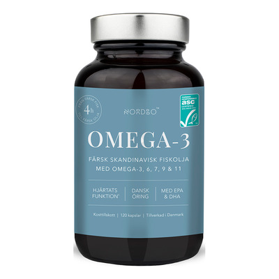 NORDBO Omega-3 kapslar innehåller färsk och obehandlad fiskolja från dansk öring. Oljan är lokalt producerad och ASC-certifierad, vilket garanterar att den är hållbart producerad med respekt för miljö, djur och människor. Oljan går från färsk fisk till färsk olja på bara 4 timmar.