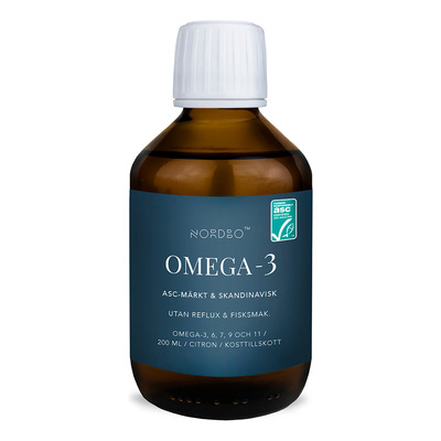 NORDBO Omega-3 flytande fiskolja är både färsk och obehandlad. Oljan kommer från dansk öring, där den produceras lokalt och hållbart med ASC-certifiering och respekt för miljön. Fiskoljan är dessutom fri från gifter och tillverkad av rester från matfisk som normalt kasseras. Den innehåller Omega 3, 6, 7, 9 och 11 samt fettsyrorna EPA och DHA, som bidrar till hjärtats normala funktion*.