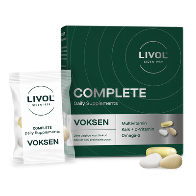Livol Complete Adult är ett dagligt kosttillskott i praktiska dospåsar för vuxna