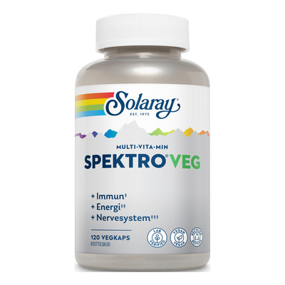 Solaray SpektroVEG är ett kosttillskott i kapselform speciellt sammansatt för att passa vitamin- och mineralbehovet hos veganer och vegetarianer. Bland annat har det ett högt innehåll av vitamin B12, som många med enbart växtbaserad kost kan ha svårt att få i tillräcklig mängd via kosten. Dessutom innehåller kapslarna selen, D2-vitamin, zink och A-vitamin från betakaroten.