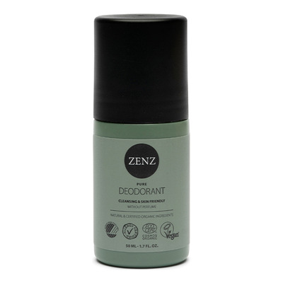 ZENZ Pure Deodorant är en mild roll-on som hjälper till att hålla huden fräsch utan att blockera porerna. Den är baserad på 99,9% naturliga ingredienser. Aloe vera och glycerin återfuktar och mjukgör huden under armarna, vilket gör den lämplig för daglig användning.