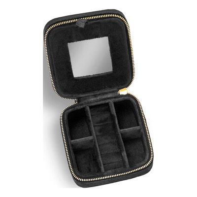 Gillian Jones smyckeskrin i svart velour är en kompakt och funktionell smyckesförvaring som är perfekt för resor och utflykter