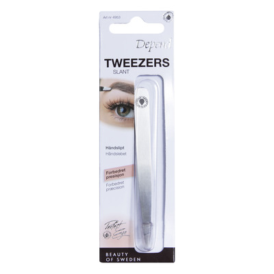 Depend Pincet Slant är en pincett av rostfritt stål som är bra för att plocka och forma dina ögonbryn. Pincetten är handslipad i fyra vinklar med fasade blad, så att du får bästa grepp. Det ger precision och effektiv borttagning av oönskat hår.