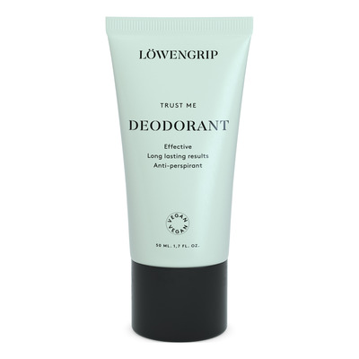Löwengrip Trust Me Deodorant är en effektiv antiperspirant som snabbt absorberas av huden och håller dig fräsch hela dagen. Formulan minskar svettproduktionen snarare än att bara maskera lukt och lämnar huden mjuk och torr. Den är framtagen för att vara skonsam även mot känslig hud.