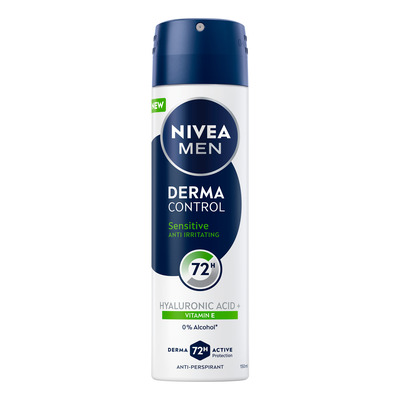 Nivea Derma Control Sensitive Male Spray är en skonsam antiperspirant med 72 timmars svett- och luktskydd