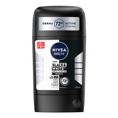 Nivea Men Black & White Invisible Deostick är en antiperspirant deodorant för män som håller dig torr i upp till 48 timmar. Deodoranten skyddar mot vita och gula fläckar på kläderna. Den ger dig effektivt skydd mot svett och lukt samt vårdar huden under armarna. Deodoranten har en maskulin och fräsch doft som ger en uppfriskande känsla hela dagen. Stickdeodoranten är dermatologiskt testad.