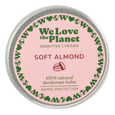 We Love The Planet Soft Almond är en naturlig och vegansk deodorant speciellt framtagen för känslig hud. Den innehåller inga aluminiumsalter och är tillverkad av naturliga ingredienser. Den milda mandeldoften gör den behaglig att använda varje dag och den skyddar effektivt mot svettlukt i upp till 48 timmar. Formuleringen är skonsam och utan onödiga tillsatser, vilket gör den lämplig för daglig användning.
