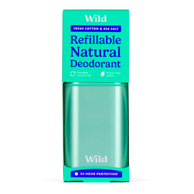 Wild Refillable Natural Deodorant Fresh Cotton & Sea Salt är en förpackning med refilldeodorant och blått aluminiumhölje