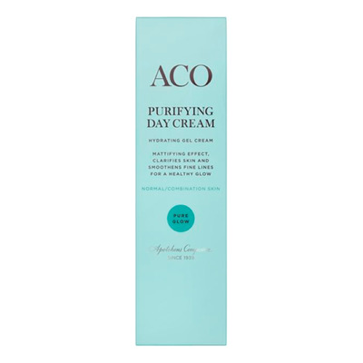ACO Pure Glow Purifying Day Cream är en gelkräm med en mattande effekt som är idealisk för fet och kombinerad hud. Den här lätta krämen bekämpar effektivt orenheter och porer samtidigt som den reducerar fina linjer och de första ålderstecknen. Huden återfuktas intensivt i upp till 24 timmar och lämnas med en naturlig lyster utan att kännas fet. Den milda parfymen tillför en behaglig doft som gör det till ett nöje att använda krämen varje dag.