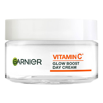 Garnier Vitamin C Glow Boost Day Cream är en återfuktande dagkräm för hud som saknar lyster och vitalitet. Krämen är berikad med koncentrerad C-vitamin och Super Citrus för att bidra till en jämnare och mer strålande hudton. Vid daglig användning blir huden mjukare, slätare och synbart mer levande. Garnier Vitamin C Glow Boost Day Cream har en lätt konsistens som absorberas snabbt utan att verka fet.