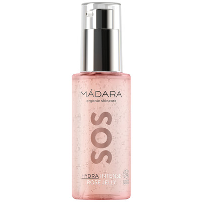 Mádara SOS Hydra Intense Rose Jelly är särskilt lämplig för torr och stressad hud i behov av lugn. Gelkrämen är även certifierad av EcoCert, cruelty-free och vegan. Den har en ganska lätt gelkonsistens, som är lätt att applicera och absorberas snabbt i huden utan att verka kladdig.
