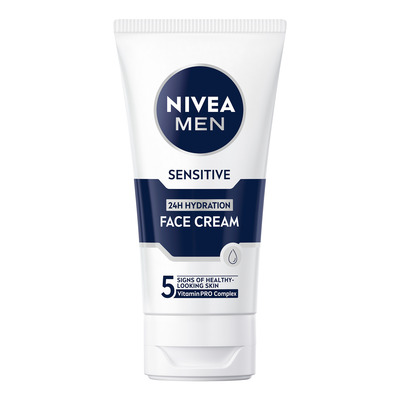 Nivea Men Sensitive Face Cream är en ansiktskräm speciellt utvecklad för män. Ansiktskrämen verkar vårdande, fuktgivande och skyddande på en lätt irriterad och känslig hud. Den har utvecklats utan tillsatt parfym och alkohol, som kan orsaka hudirritation. Krämen är berikad med lakritsextrakt, kamomill och UVA- och UVB-filter som lindrar huden. Krämen är dermatologiskt testad.
